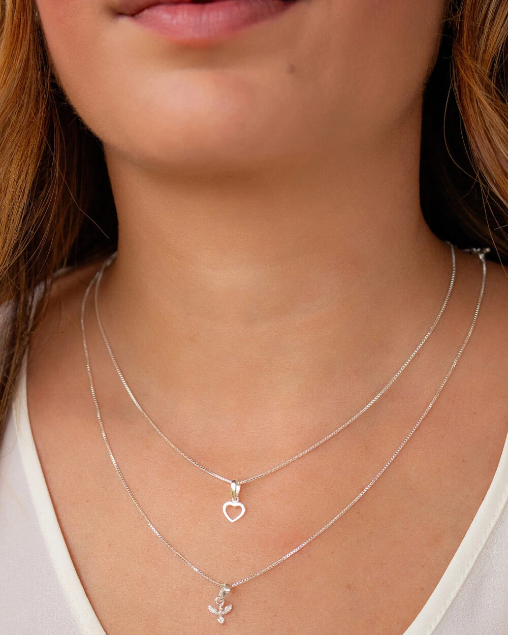 O Mix Amor e Fé une dois colares delicados e cheios de intenção: o colar de coração vazado, que representa o romantismo moderno, e o colar Espírito Santo, símbolo de fé, proteção e luz. Essa combinação é perfeita para presentear no Dia dos Namorados, uma união que vai além da estética: emociona, representa e conecta. Combine os dois colares em camadas para um look atual, delicado e cheio de significado. Um mix que traduz sentimentos em forma de semijoia. Aposte nessa escolha que une estilo com simbolismo e acerte em cheio na hora de se vestir ou presentear.