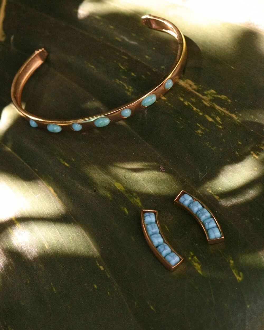 - O bracelete turquesa pode ser usado sozinho ou em composição com outras pulseiras douradas para um efeito ainda mais poderoso.
