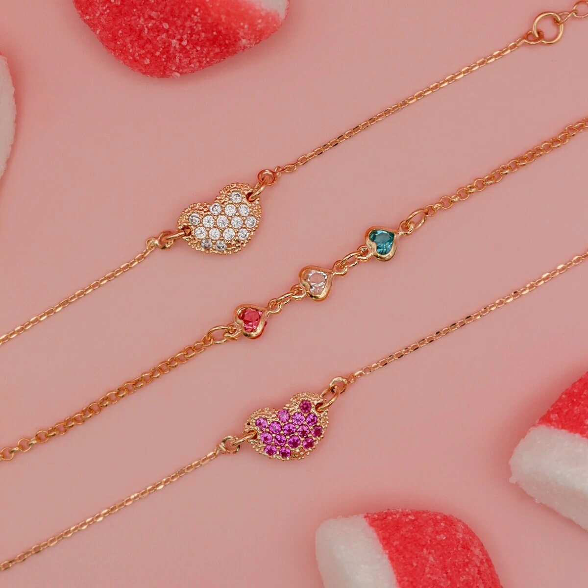 Conheça a nossa Pulseira Coração Zircônia Pink Linha Mãe/Filha, um toque de cor e muito amor envolvido: o coração cravejado em zircônias pink ilumina essa pulseira com feminilidade, romantismo e sofisticação. Uma peça atemporal para ser usada com a filha ou para presentear quem faz o coração bater mais forte.