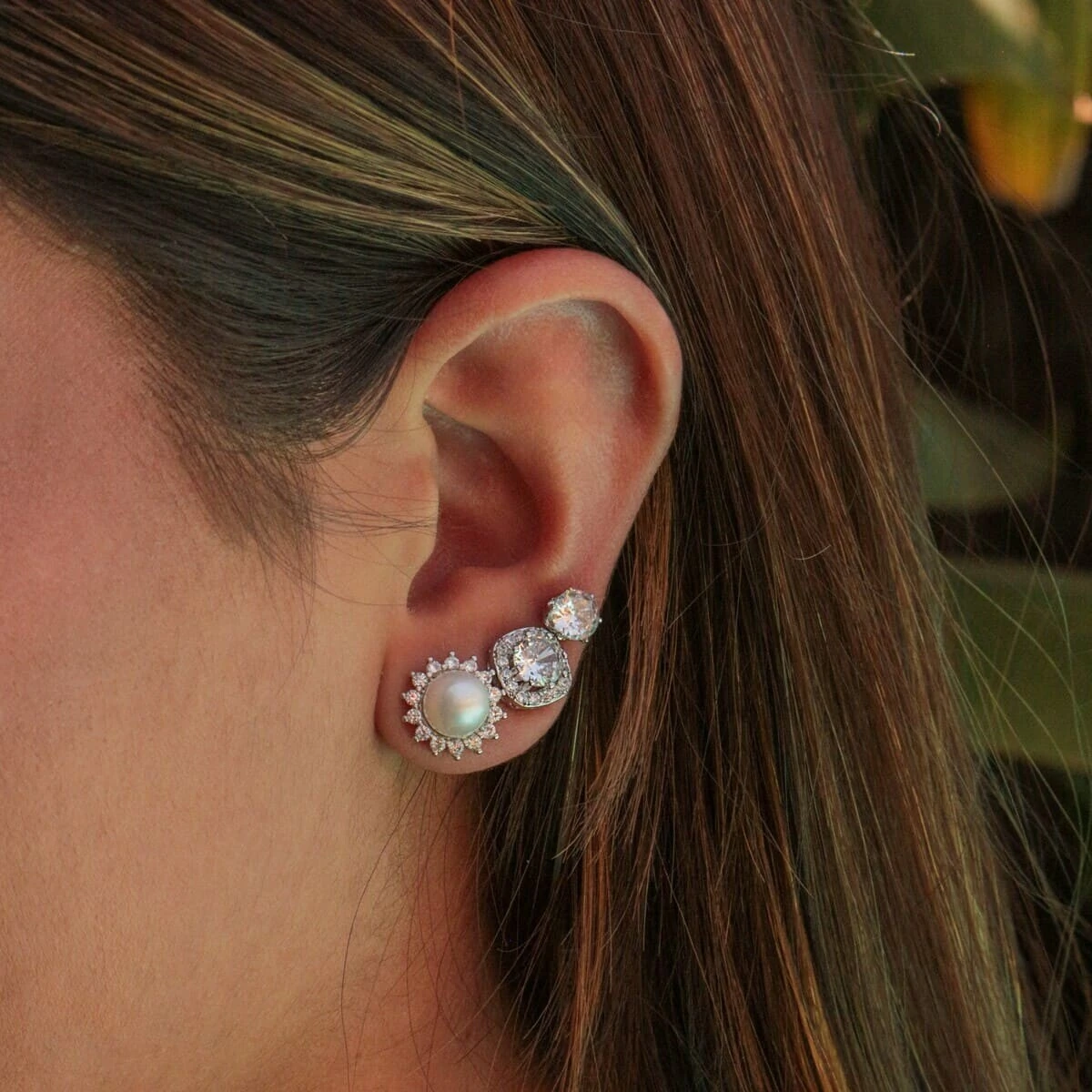Versatilidade em três versões; o Trio de Brincos Pérola com Cristal traz opções para diferentes momentos.