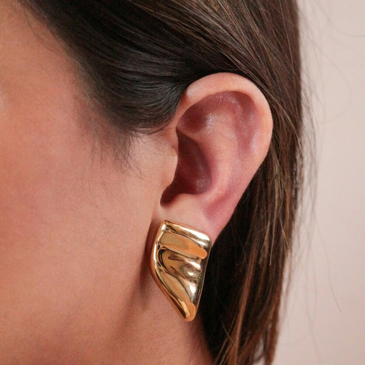 Elegância orgânica para elevar qualquer look. O Brinco Orgânico Pontudo Luana apresenta formato assimétrico com textura amassada sutil e estética abaulada.