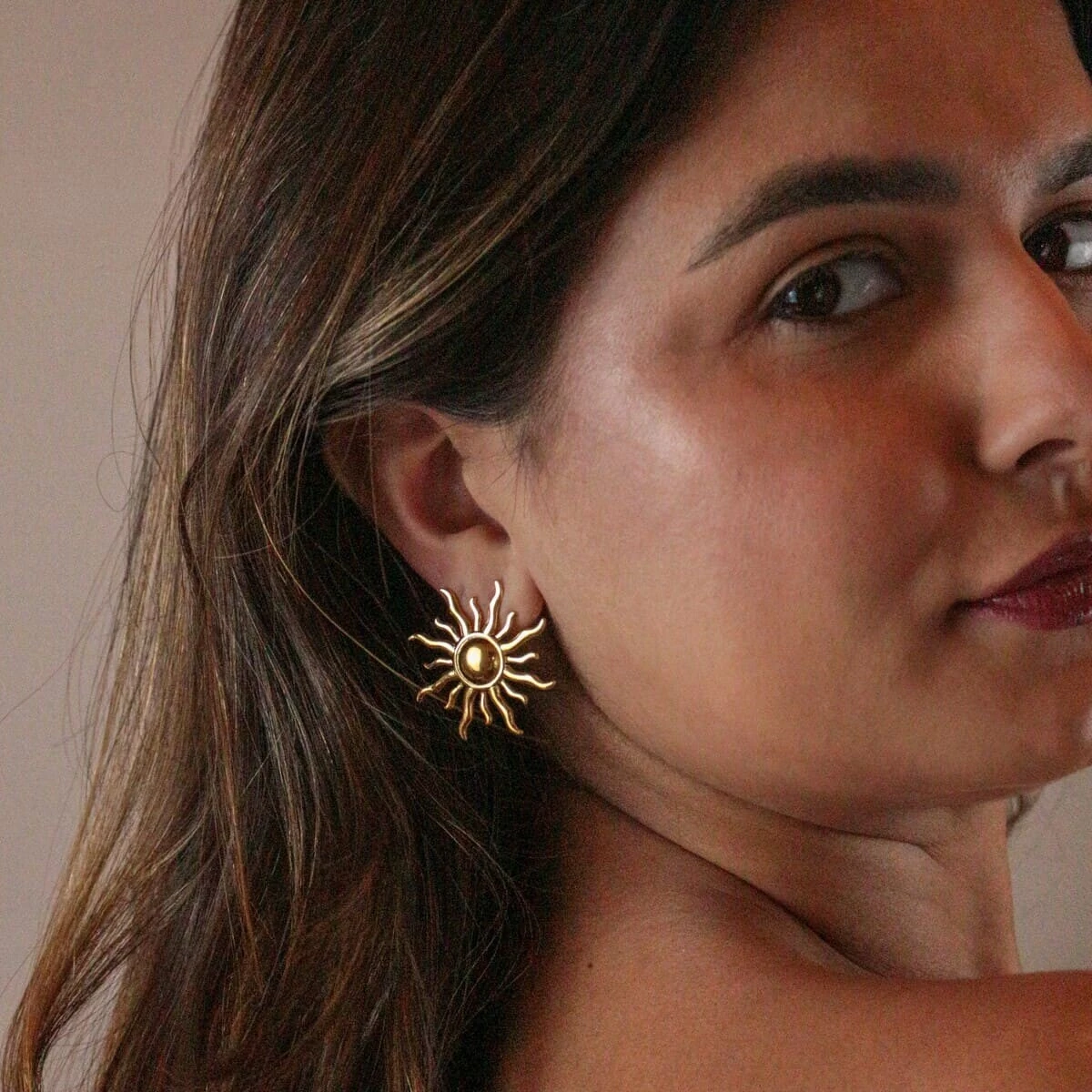 Ilumine seu estilo com o Brinco Aço Sol, uma semijoia que simboliza energia, força e vitalidade feminina.