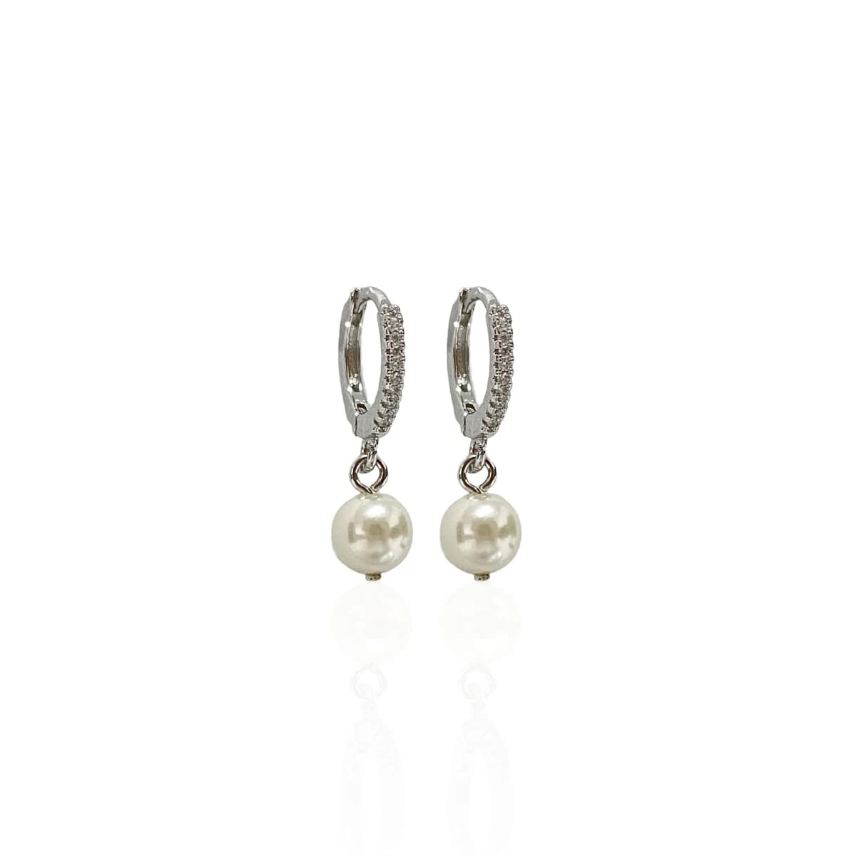 A argola com fecho clique garante conforto, enquanto a parte frontal cravejada e a pérola pendente trazem um toque clássico com movimento delicado.