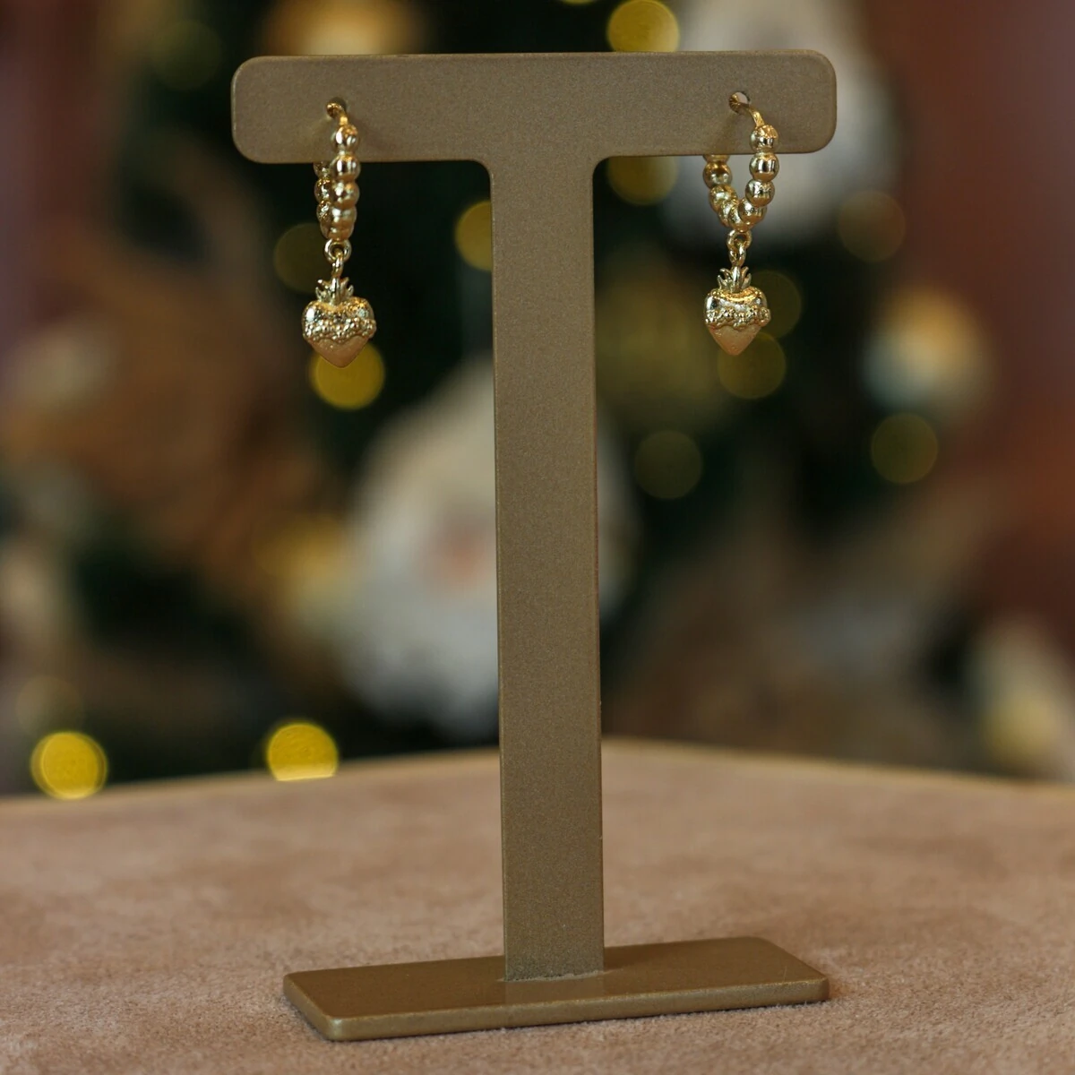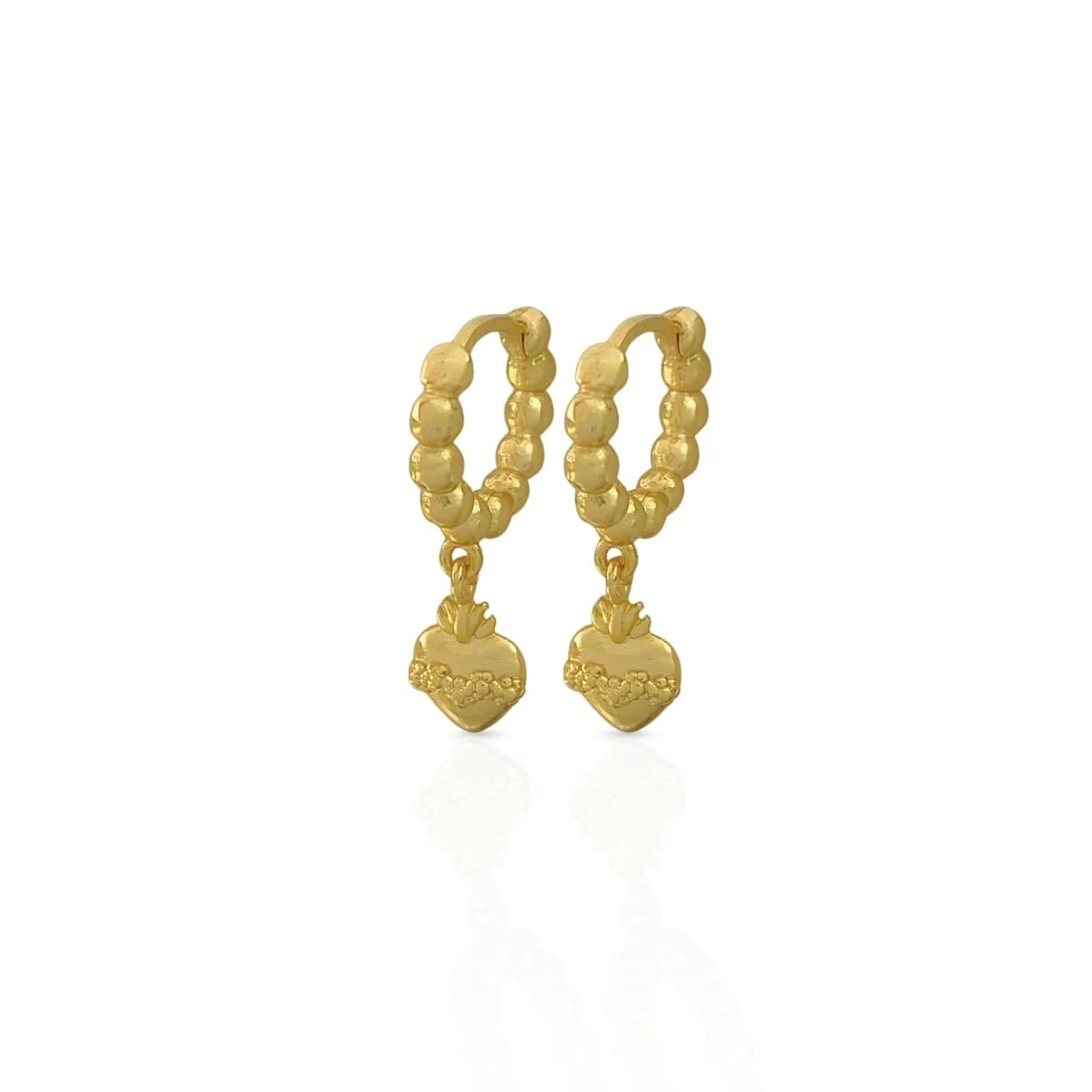 O Brinco de Argola Pequena com Bolinhas Pingente Sagrado Coração é a união perfeita do moderno com o sentimental.