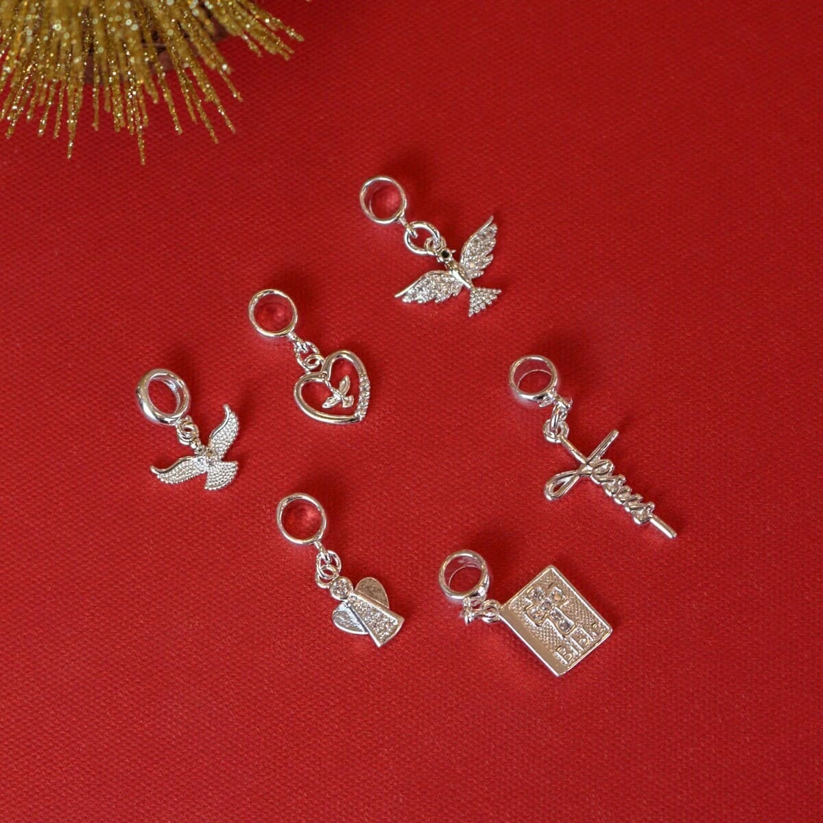 Delicado e cheio de significado, este berloque possui um coração vazado com mini pingente do Espírito Santo ao centro, além de cinco micro zircônias posicionadas na lateral inferior do coração.