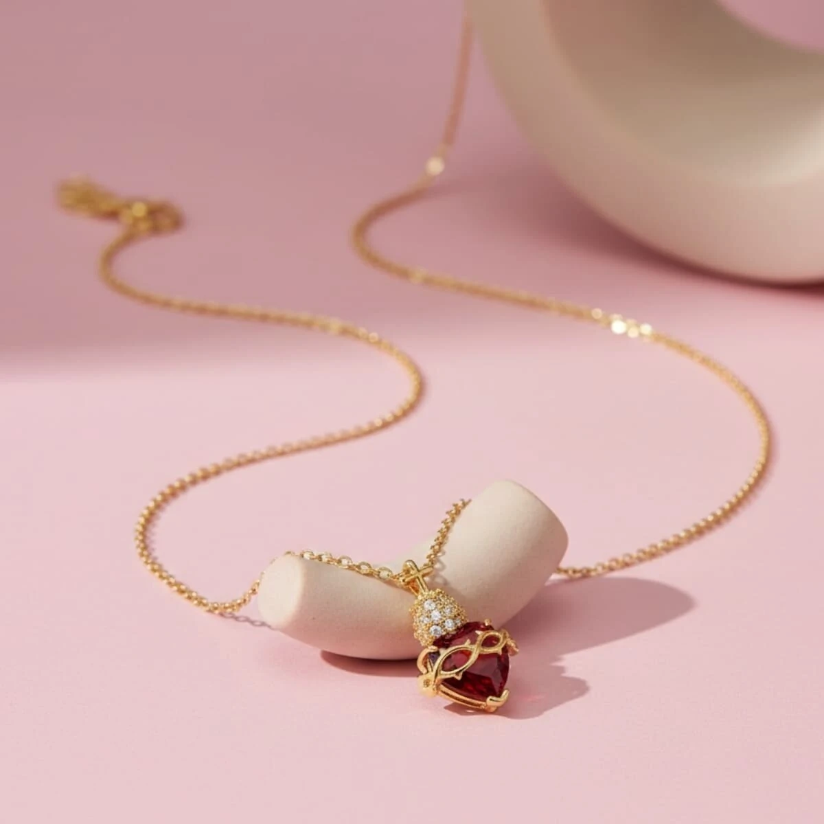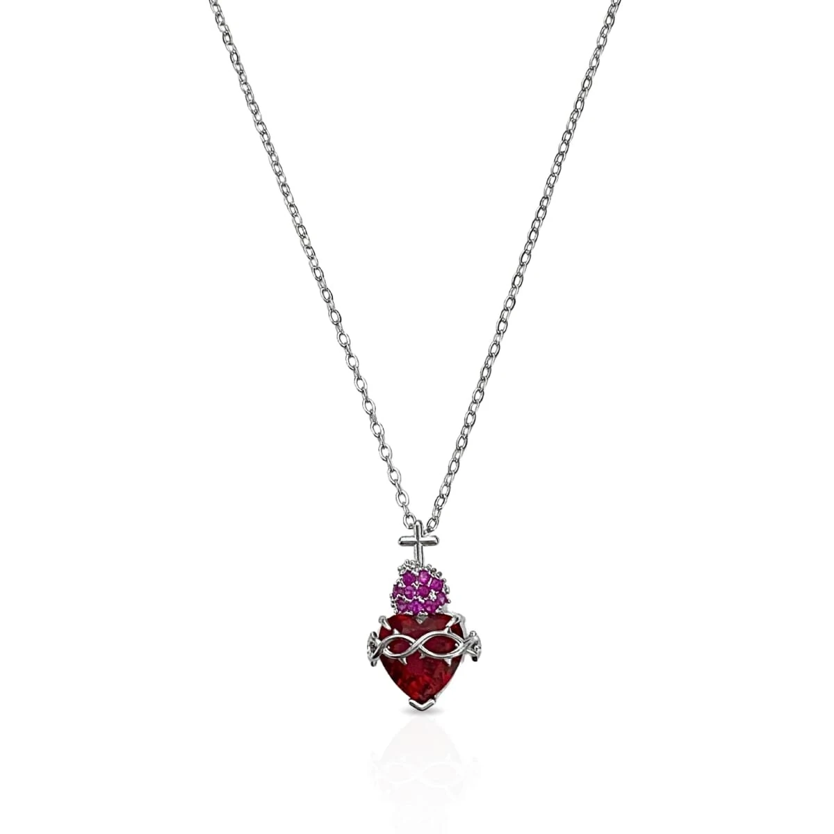 O Colar Sagrado Coração Rubi combina espiritualidade e presença visual.