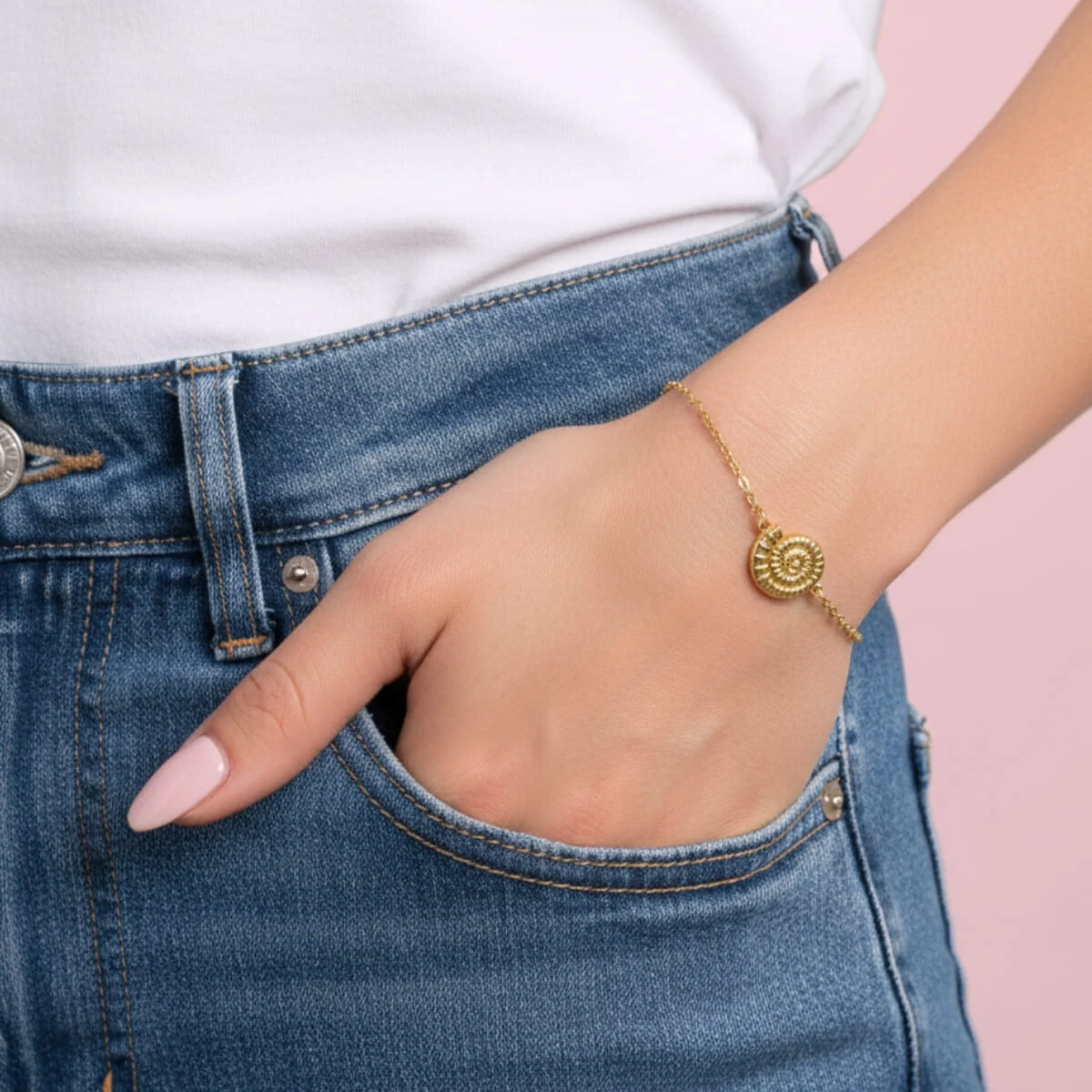 Um detalhe orgânico que valoriza o pulso. A Pulseira Caracol Centro se destaca pelo elemento central com forma orgânica, inspirada na natureza, criando um visual elegante e atemporal.